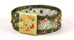 Combine 3 colors of 3mm WireLace, an Alacarte Simplicity magnetic clasp and a Swarovski BeCharmed big-hole bead to create a stunning bracelet that you can make in a jiffy!