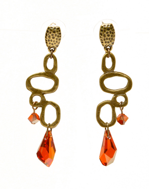 Make these rustic earrings lickety-split and you will be ready for a royal rodeo! The antique-brass hammered posts are joined with a stylish organic link and highlighted with smokin-hot magma colored SWAROVSKI ELEMENTS . Designed to coordinate with the Chilipeppers necklace.