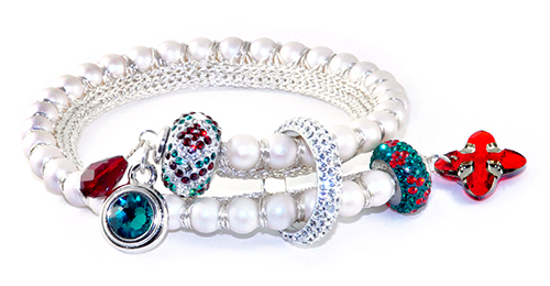 The perfect bracelet to wear for all your holiday celebrations. Create this stunning bracelet with crystals from Swarovski wrapped in luxurious WireLuxe knitted wire. Designed by Linda Hartung, Swarovski Authorized Teacher and inventor/manufacturer of WireLuxe, made in the USA.
