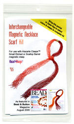 Create your own interchangeable necklace scarf with our kit made with fine Italian glass seedbeads and a magnetic clasp from Alacarte. Overall finished length is 39" so it sure to fit any neckline. Make a second necklace and interchange them to create a different color combination. All components are nickel-free. For clasp styles and seedbead colors scroll down.