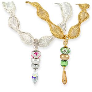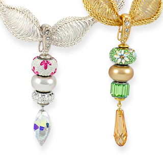Supplies include: BeCharmed Beads: 81762 Lily-White Opal, 5890 Pearl-White, 81201 Square Slim-Crystal; 6541 Twisted Drop-Crystal AB, Alacarte Crystal Hinged Bail, Findings Pack (2 bead aligners, headpin, 6 bicones). Download instructions click here